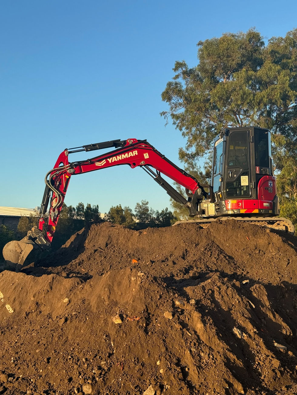 A series of excavation site projects showcasing heavy machinery, construction in progress, and exposed earth layers.